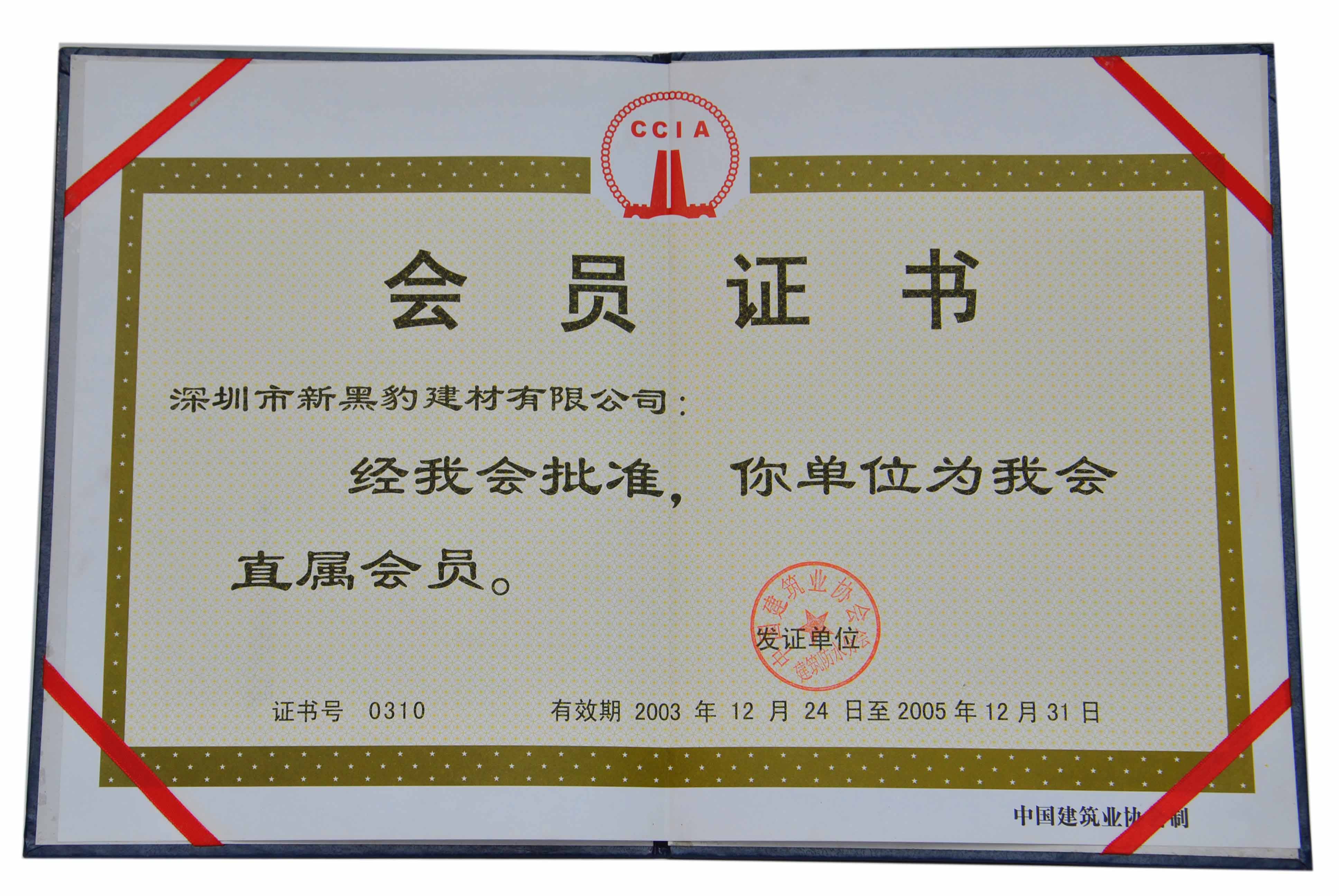 我公司2003年12月獲得中國建筑業協會會員證書