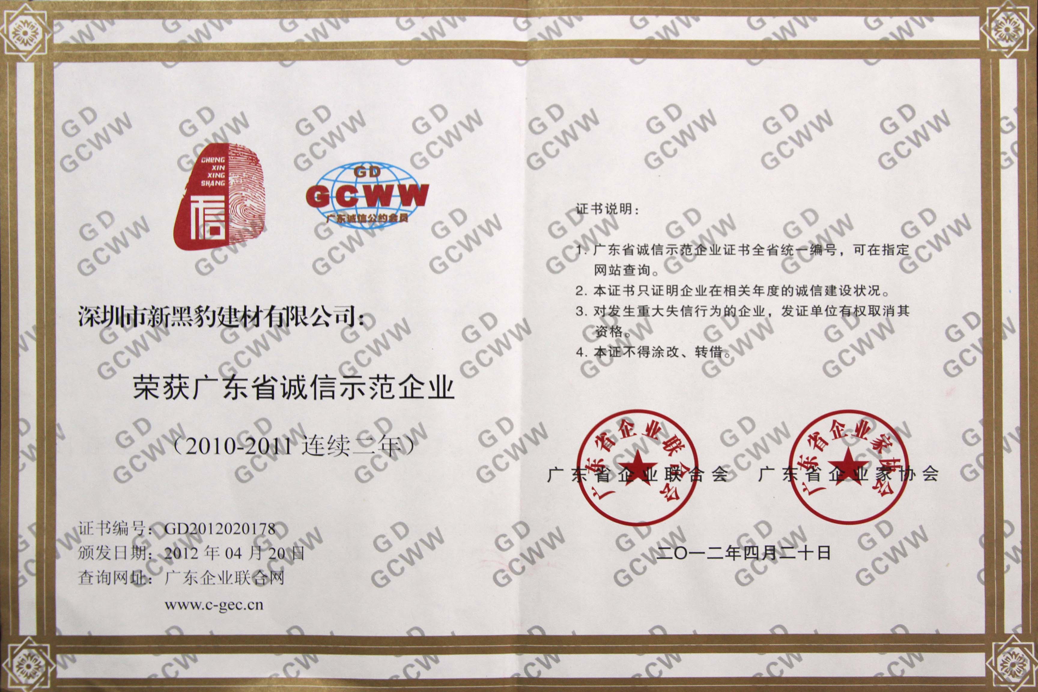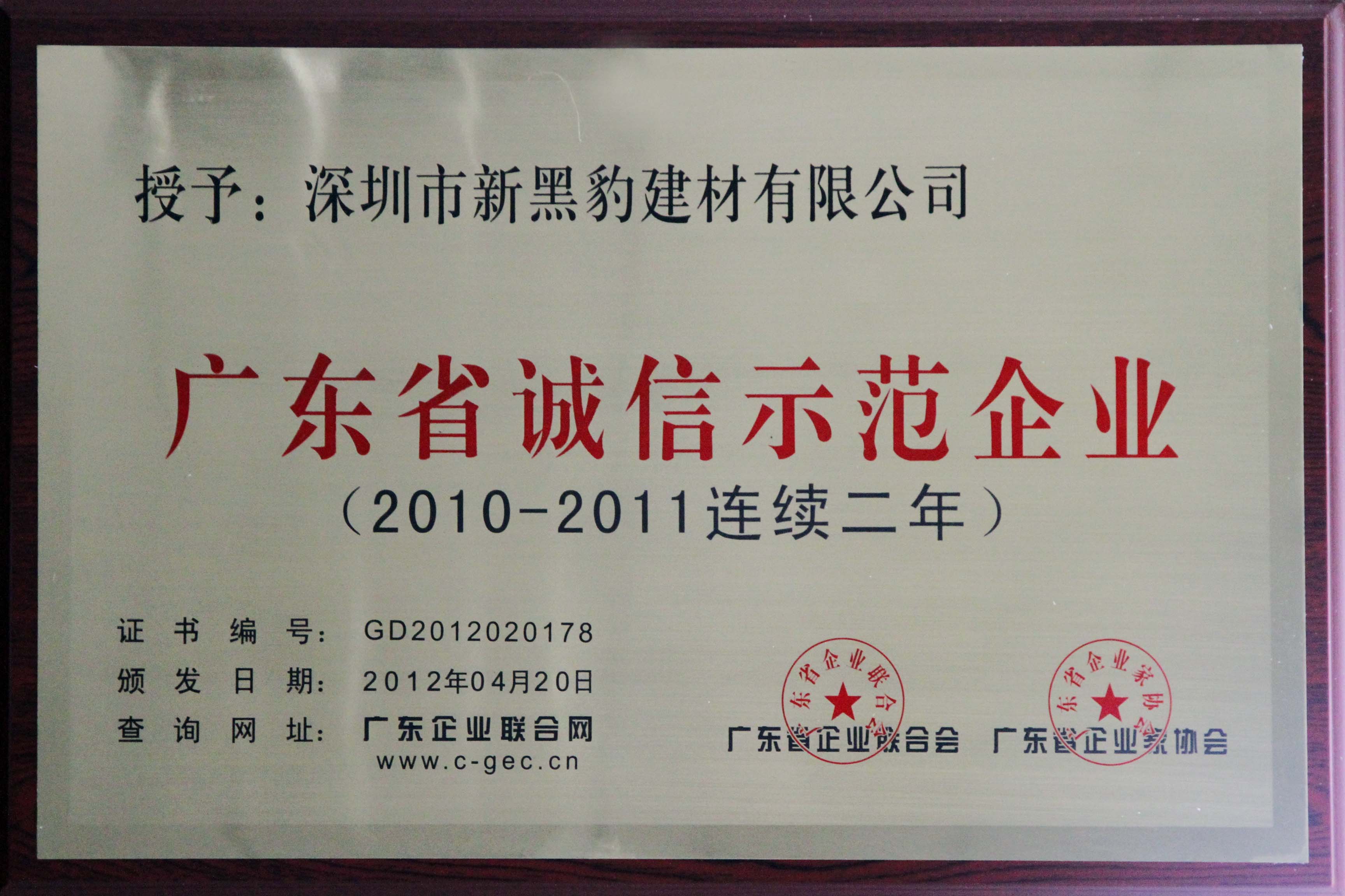 深圳市新黑豹建材有限公司獲得“2011年度廣東省誠信示范企業(yè)”榮譽(yù)稱號(hào)