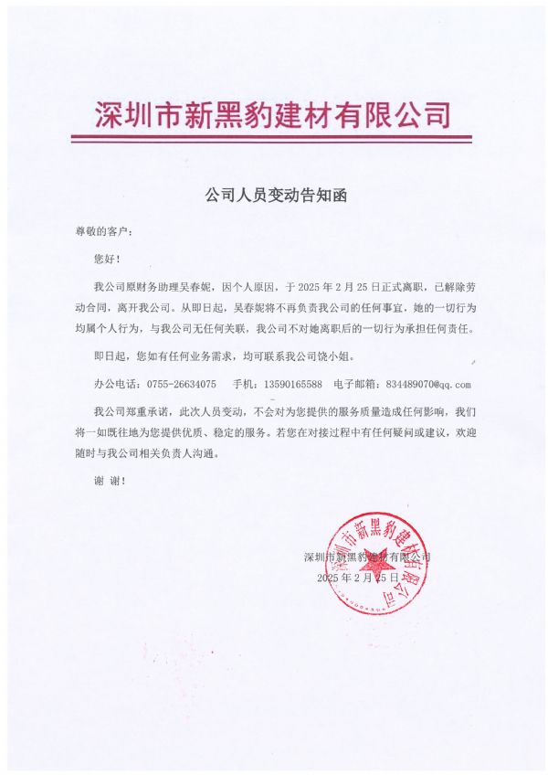 公司人員變動告知函