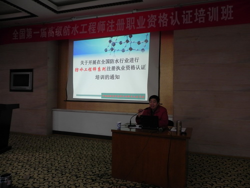 全國(guó)第一屆高級(jí)防水工程師注冊(cè)職業(yè)資格認(rèn)證培訓(xùn)班于3月18~21日在蘇州華僑飯店成功舉辦,來自全國(guó)各地的80余名防水工作者參加了本次培訓(xùn)班。蘇州中材非礦院防水材料設(shè)計(jì)研究所所長(zhǎng)沈春林教授任主講老師。在3月21日上午,學(xué)員進(jìn)入考場(chǎng),參加了高級(jí)防水工程師注冊(cè)職業(yè)資格認(rèn)證的測(cè)試,測(cè)試結(jié)果將于近期公布。成績(jī)合格者將取得高級(jí)防水工程師注冊(cè)職業(yè)資格認(rèn)證的證書。我公司員工也參與了這次培訓(xùn)。