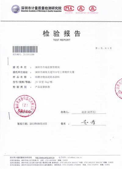 2013年8月22日,由深圳市市場監(jiān)督管理局委托深圳市計量質(zhì)量檢測研究院對我深圳市新黑豹建材有限公司生產(chǎn)的HB聚合物水泥防水涂料產(chǎn)品進(jìn)行了產(chǎn)品監(jiān)督抽查,檢測產(chǎn)品的各項指標(biāo)均符合GB/T23445—2009,JC1006—2008標(biāo)準(zhǔn)技術(shù)要求,并依據(jù)《2013年廣東省防水涂料產(chǎn)品質(zhì)量定期監(jiān)督檢驗實施方案》,我公司生產(chǎn)的HB聚合物水泥涂料產(chǎn)品均為合格品。