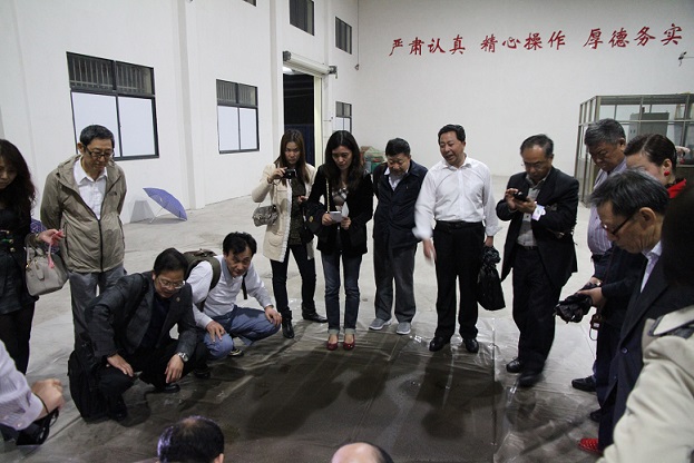 在我公司董事長王榮柱、總經理王俊以及工程總監等的全程陪同下,專家們參觀了我公司控股的公司宜昌市黑豹建筑防水材料有限公司、生產車間、實驗室等并進行了座談,并前往宜昌工地現場觀摩噴涂速凝橡膠瀝青防水涂料演示過程,王榮柱董事長將控股公司宜昌市黑豹建筑防水材料有限公司情況作了具體介紹,專家們對新黑豹公司務實、追求技術進步、創新等方面表示贊賞。專家團一行還專門考察了宜昌天璽龍閣工地的地下室,采用噴涂速凝橡膠瀝青防水涂料施工。