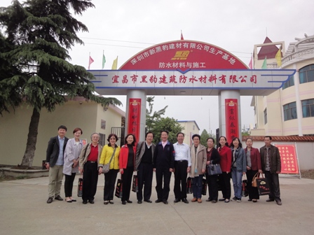 2014年4月26-27日,湖北省工程建設專家委員會秘書長、湖北省土木建筑學會秘書長、高級工程師黃光碧;中國建筑總公司專家委員會主任、中建三局顧問總工;重慶大學、華工大學、武漢大學兼職教授、博導張希黔;中南建筑設計股份有限公司一級注冊建筑師、高級工程師俞紅;中興建筑設計研究總院有限公司處長、高級工程師、一級注冊建筑師李上賓;湖北省產品質量檢測站站長、高級工程師黃莉;中國建筑防水協會專家委員會專家、教授級高工陳安寧;湖北省建筑防水協會會長桂春芳;秘書長鄭宏勤一行13人到宜昌市半月鎮考察了深圳市新黑豹建材有限公司生產基地——宜昌市黑豹建筑防水材料有限公司和宜昌兆豐商貿有限公司天璽龍閣紅酒酒莊建設施工工地。
