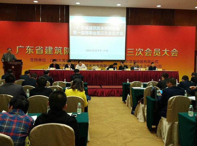 12月12日,廣東省建筑防水材料協會第三次會員大會在廣州白云國際會議中心舉行,我公司作為常務理事單位參加了這次會議。這次會議對協會全年的工作進行了總結,協會秘書處對協會的財務情況作了報告。在這次會議上,參會的全體會員投票表決了將“廣東省建筑防水材料協會”更名為“廣東省建筑防水協會”的決定。