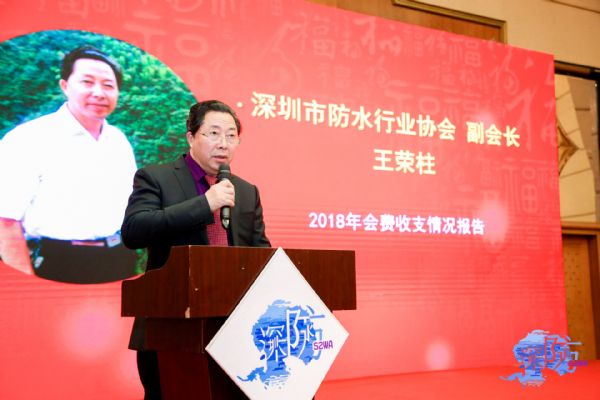 會議現場 大會上深圳市防水行業協會會長瞿培華教授作題為《把握大勢,創新思維,扎實推進深圳防水行業各項工作》的深圳市防水行業協會2018年工作總結和2019年工作要點。介紹了協會2019年15項主要工作,呼吁深圳防水人關注行業大事、緊跟政府政策,精誠團結,共同奮斗!深圳市新黑豹建材有限公司董事長王榮柱作為深圳防水行業協會副會長宣讀了“2018協會年會費收支情況報告”。