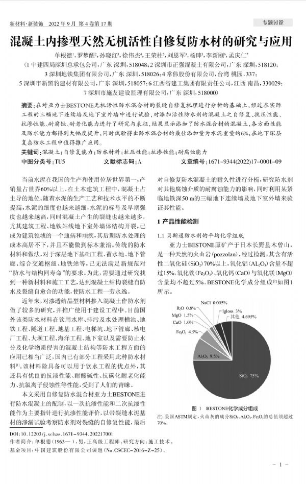 混凝土內(nèi)摻型天然無機(jī)活性自修復(fù)防水材的研究與應(yīng)用