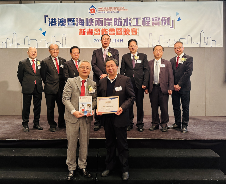 2024年1月4日,由中國建筑防水協會指導,香港混凝土維修及防水協會發起并主編,聯合深圳市防水行業協會、澳門混凝土檢測維修及防水工程協會、臺灣營建防水技術協進會及港澳臺相關企業和深圳市防水行業協會部分會員單位等單位共同編撰的《港澳暨海峽兩岸防水工程實例》(以下簡稱《實例》)新書發布會在中國香港召開。 《實例》一書中國深圳方面提供案例的單位有:東方雨虹、新黑豹、科順股份、深圳先泰、深圳卓寶、深圳朗邁、廣州臺實、北京圣潔、西牛皮、卓眾之眾、北新防水、卓眾科技、江蘇凱倫、成都賽特、福建華鴻、北方創信、國控基業、江蘇華建、深圳德誠、泰利斯、廣東青龍、安徽德淳、深圳科洛、福建特萊頓(24家企業27個工程案例)。 香港前屋宇署署長區載佳太平紳士首先致辭,他表示本書匯集港澳暨海峽兩岸的防水專業力量,各具代表性的工程實例內容可供業界作為工具書參考。 中國建筑防水協會朱冬青秘書長代表中國建筑防水協會致辭,對《實例》首發儀式表示祝賀。并表示《實例》成功面世,對各地的防水技術水平及防水工程質量的提升具有重要指導意義。 中國建筑防水協會副會長、深圳市防水行業協會會長瞿培華致辭,他首先代表深圳市防水行業協會以及提供案例的24家深圳防水會員單位對這部跨越四年的防水界實用工具書指導手冊《實例》的首發表示心的祝賀。他表示,《實例》一書分別從屋面、外墻、地下室、室內、蓄水類、橋梁及伸縮縫系統、防潮系統幾大板塊,展示了相關重點防水技術的做法及操作,將有效促進港澳海峽兩岸各地防水工程技術的提升展示了相關重點防水技術的做法及操作,將有效促進港澳暨海峽兩岸各地防水工程技術的提升。 澳門混凝土檢測維修及防水工程協會理事長王宗勝致辭,他表示《實例》一書很有意義,澳門方面這次提供的案例都是有代表性的,會免費送給澳門政府、開發商、設計院等。 臺灣營建防水技術協進會榮譽理事長徐偉杰致辭,他對參加《實例》首發儀式深表榮幸,并對新書的發布表示祝賀。表示該《實例》一書從概念、標準、檢測方法到工程實例,其將作為一個參考依據,將對設計單位及法院訴判定等方面有非常大的幫助。 香港混凝土維修及防水協會會長及副會長也分別致辭。發表了感謝詞,對《實例》編委會的個人和單位都一一致謝,十分感謝為《實例》一書編撰到出版盡心盡力的所有人員。 我公司董事長王榮柱先生,受邀參加了《實例》新書的發布會,與兩岸業內專家交流,互相溝通學習,共同展望兩岸防水技術的發展新趨勢和應用前景。 《實例》新書的發布是海峽兩岸行業人員共同的心愿,希望能通過往后能多交流,推動各地防水行業的發展。